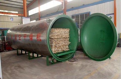 真空狀態(tài),主要利用真空狀態(tài)下水的沸點較低,蒸發(fā)速度加快,木材表面的含水率梯度增大,木材在干燥過程中,一方面表面水分向周圍空氣中蒸發(fā),另一方面內(nèi)部的水分不斷地向表面移動,所以在較低的溫度下加快了干燥速度,這樣就能保證木材的干燥質(zhì)量。而真空狀態(tài)是一種負壓狀態(tài),有一定吸水作用,與高頻的壓力梯度正好相似,也加速了木材芯部水分排出,此外,在低壓條件下,干燥介質(zhì)中的氧氣,因熱作用與氧化作用引起的物料變色少,基本上可以保持名貴木材的天然色澤。
