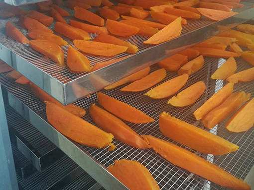 紅薯烘干要準確掌握好紅薯的干度,可用口嚼時軟而綿,這樣硬度為適宜。如果烘干過干,吃時嚼不爛,影響其品質,但烘干不到位,水分多,容易生霉腐爛。根據使用我司小型紅薯干烘干機的客戶反饋的情況,紅薯干的烘干溫度不宜超過55℃,要分階段烘干,中間要讓紅薯干回軟。